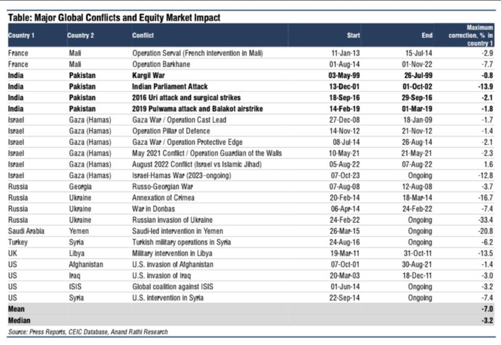 Current Tensions: Renewed India–Pakistan friction may spark short‑term volatility, but a steep market crash seems unlikely seeing the historical trends