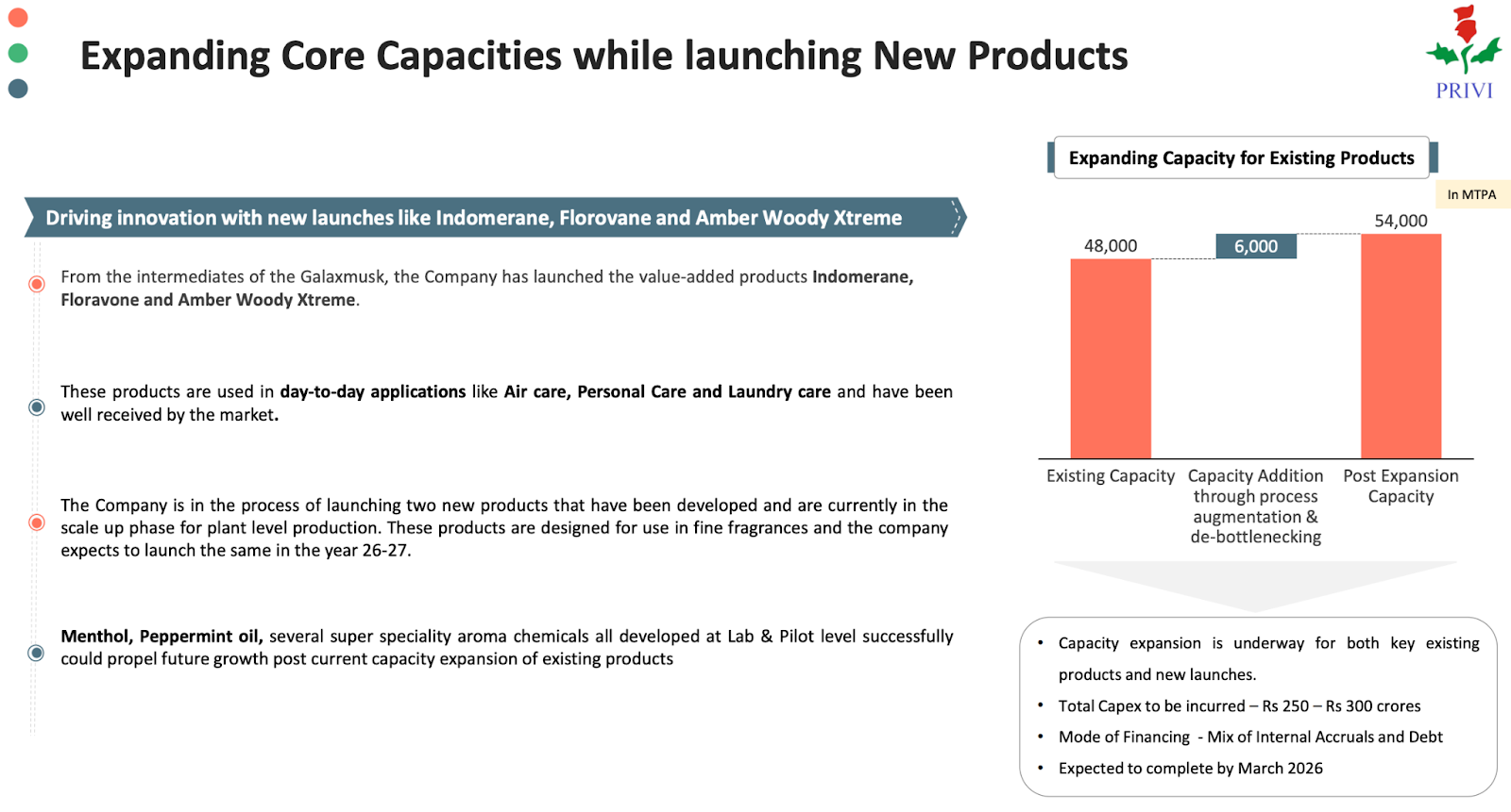 JV with Givaudan (Citroda) expected to contribute ₹300–350 crore to topline over the next 2–3 years.